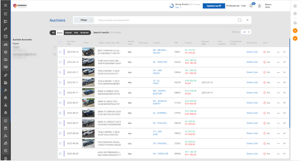 After the accounts are added, the system will automatically activate synchronization, and all purchased lots will start appearing on the “Auctions” page (Figure 4).
