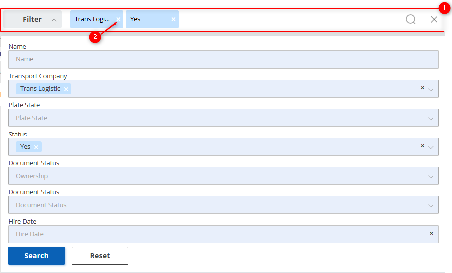 To clear the entire search and reset the filter, click the clear button