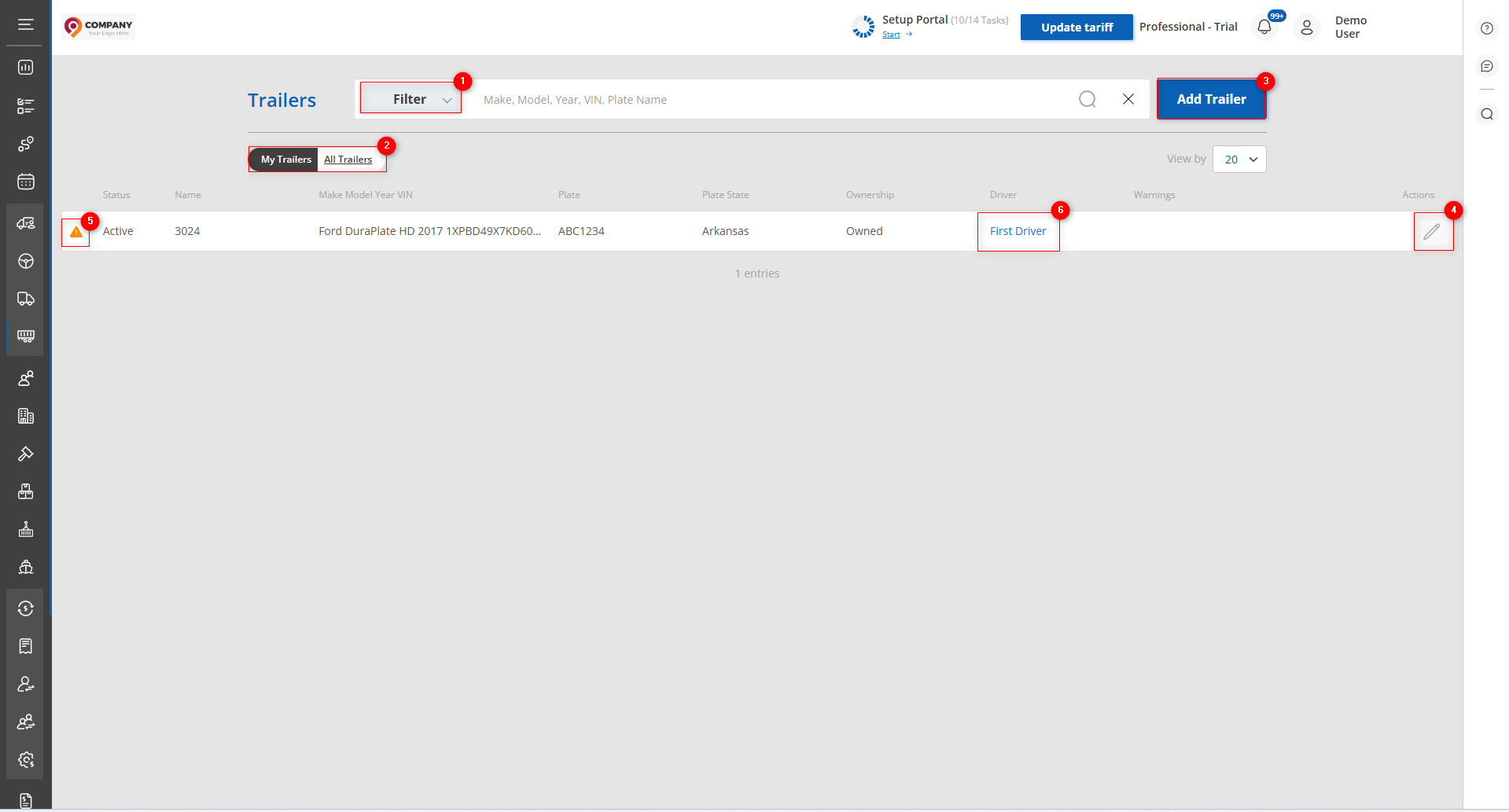 , select the “Trailers” tab. You will be redirected to the page where you can view trailers, keep records, and add new ones if necessary.