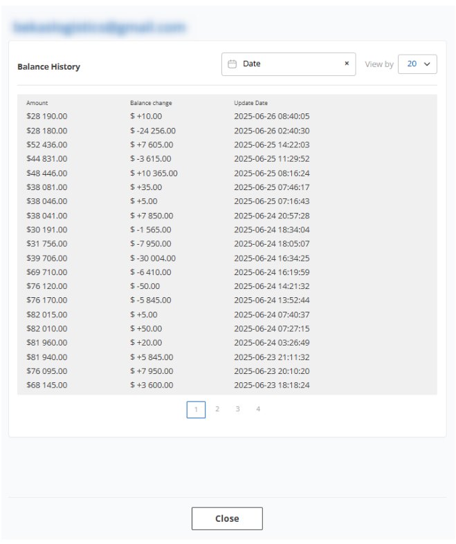 Logiline| Logistic CRM system - Auction account balance change history