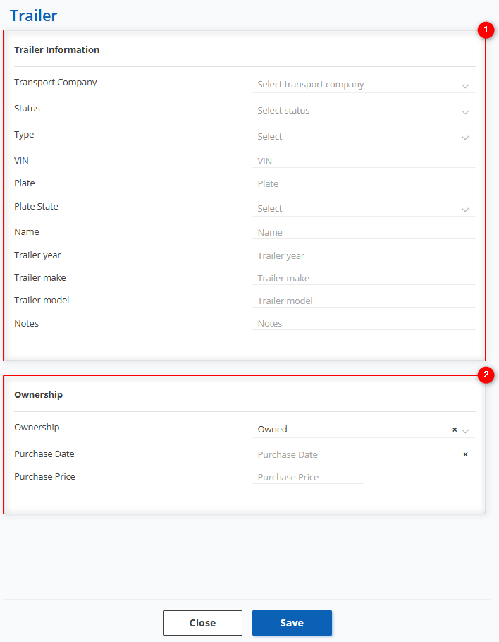 , select the transport company that the trailer belongs to; - “Plate State” — from the dropdown, select the trailer’s registration state;