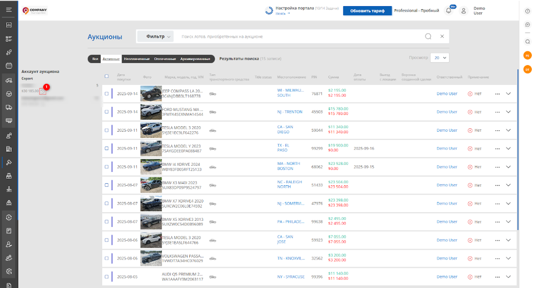 Logiline| Logistic CRM system - История изменения баланса аккаунта аукциона